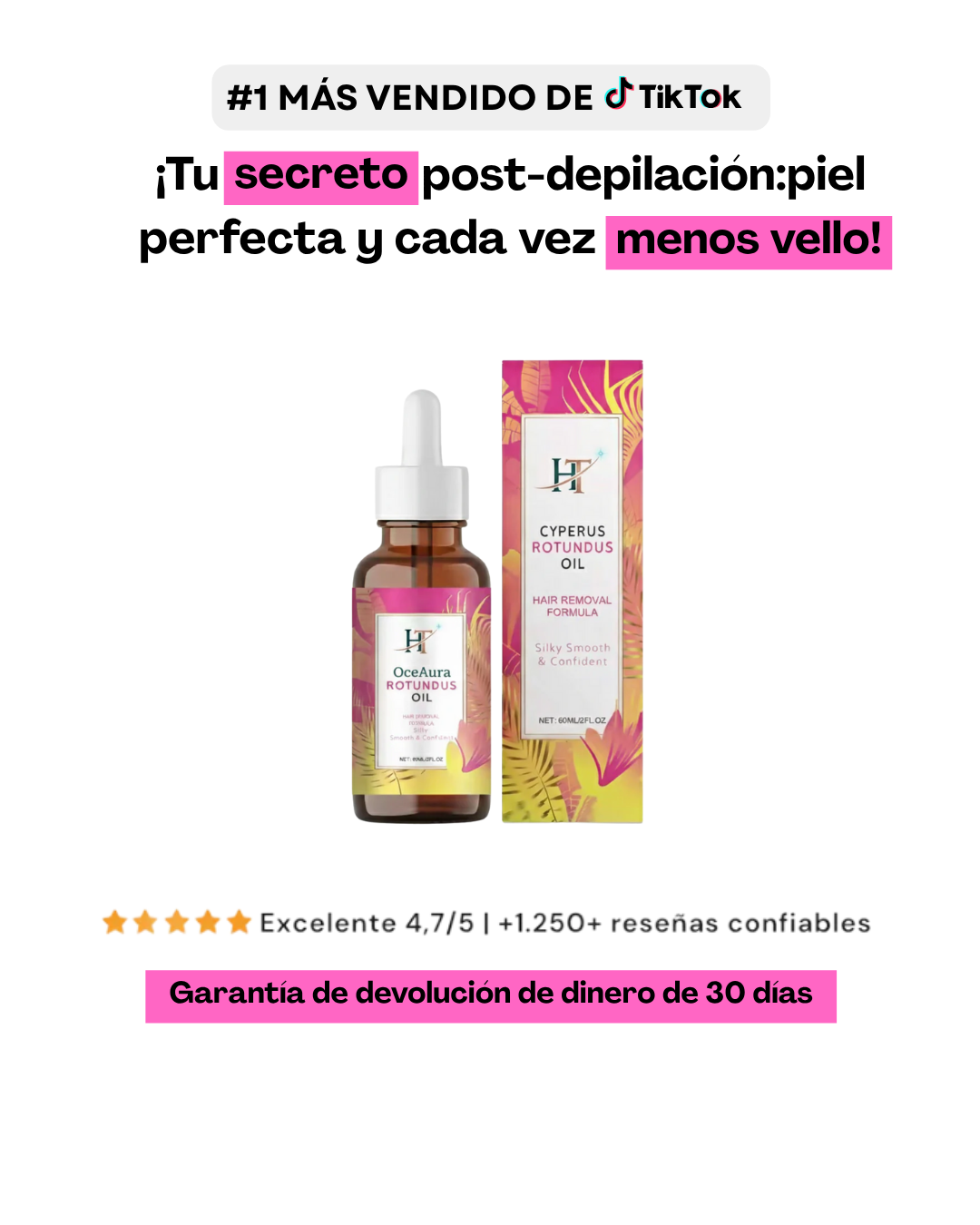 El aceite de Cyperus Rotundus nutre e hidrata la piel, reduce la aparición de vello no deseado y promueve una tez más suave y luminosa. Contiene compuestos naturales que ayudan a calmar y regenerar la piel, además de proporcionar beneficios antiinflamatorios.